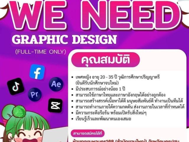- มีประสบการณ์ด้านกราฟิกอย่างน้อย 1 ปี
