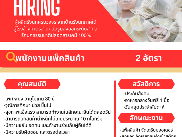 ตำแหน่ง : พนักงานแพ็คสินค้า (ด่วน!)